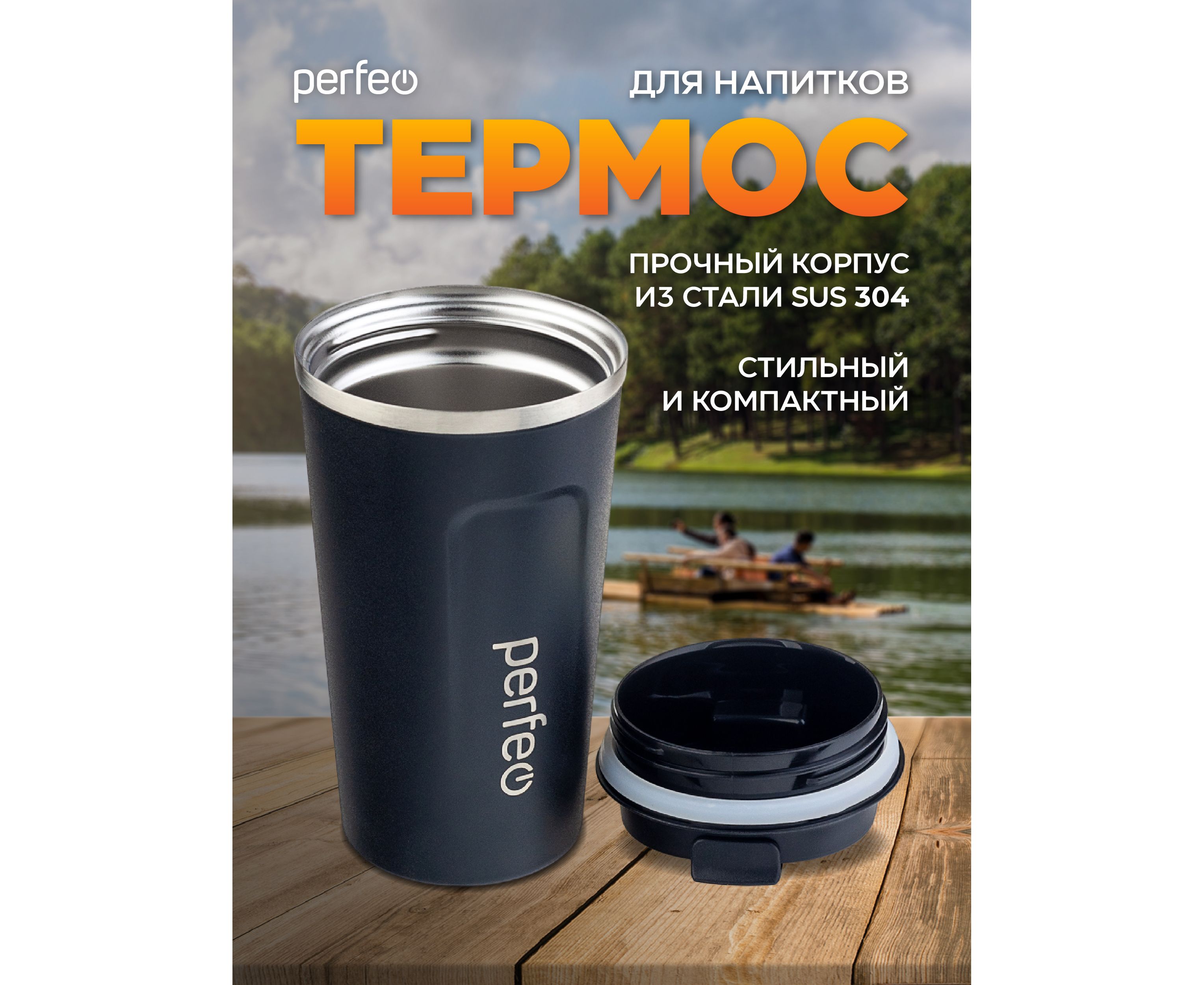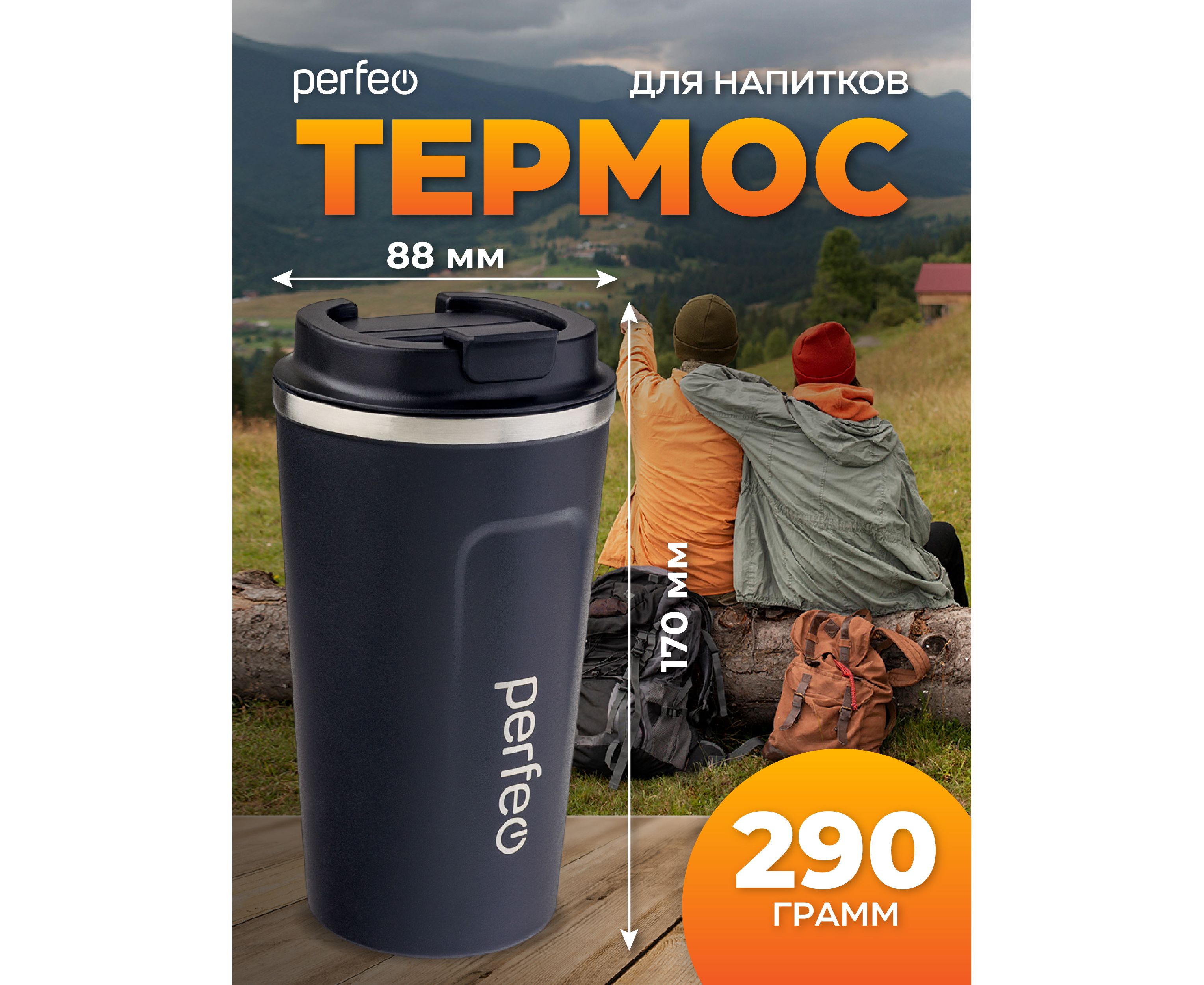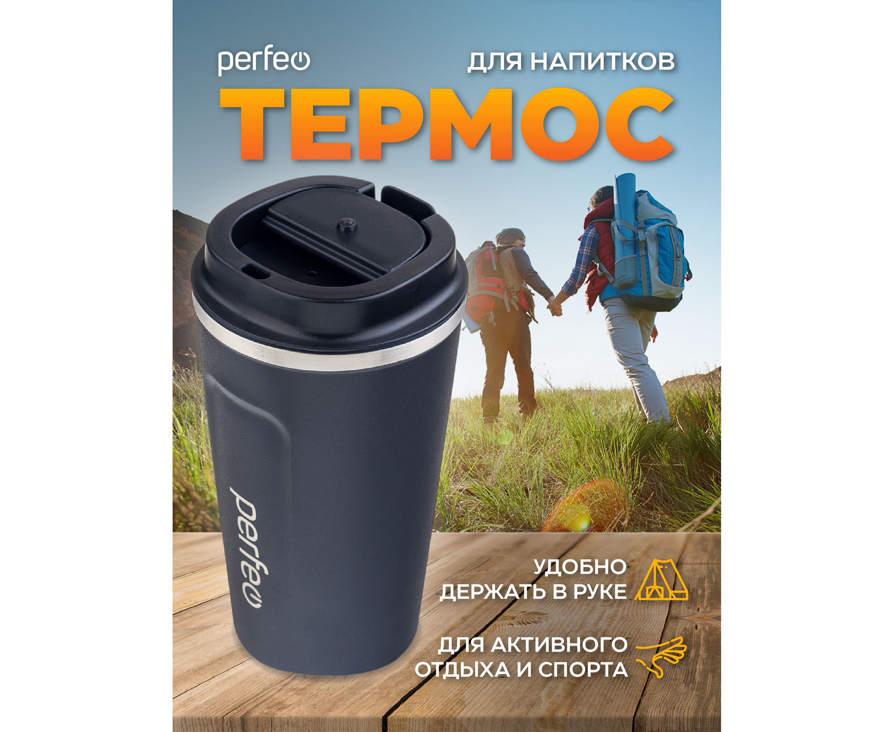 Термокружка для напитков PERFEO с крышкой-поилкой, объем 0,5 л., черный (Арт. PF_C3730)