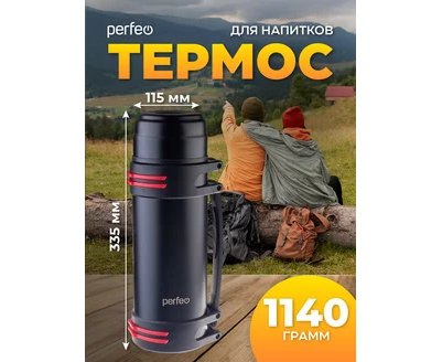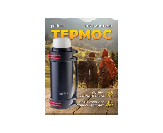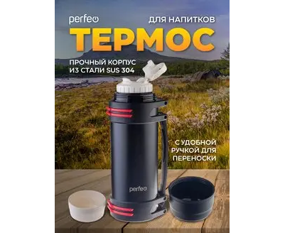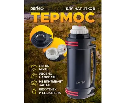 Термос для напитков PERFEO с крышкой-поилкой, ситечком, чашкой, ручкой, ремнем, объем 2 л., черный (PF_D0216)