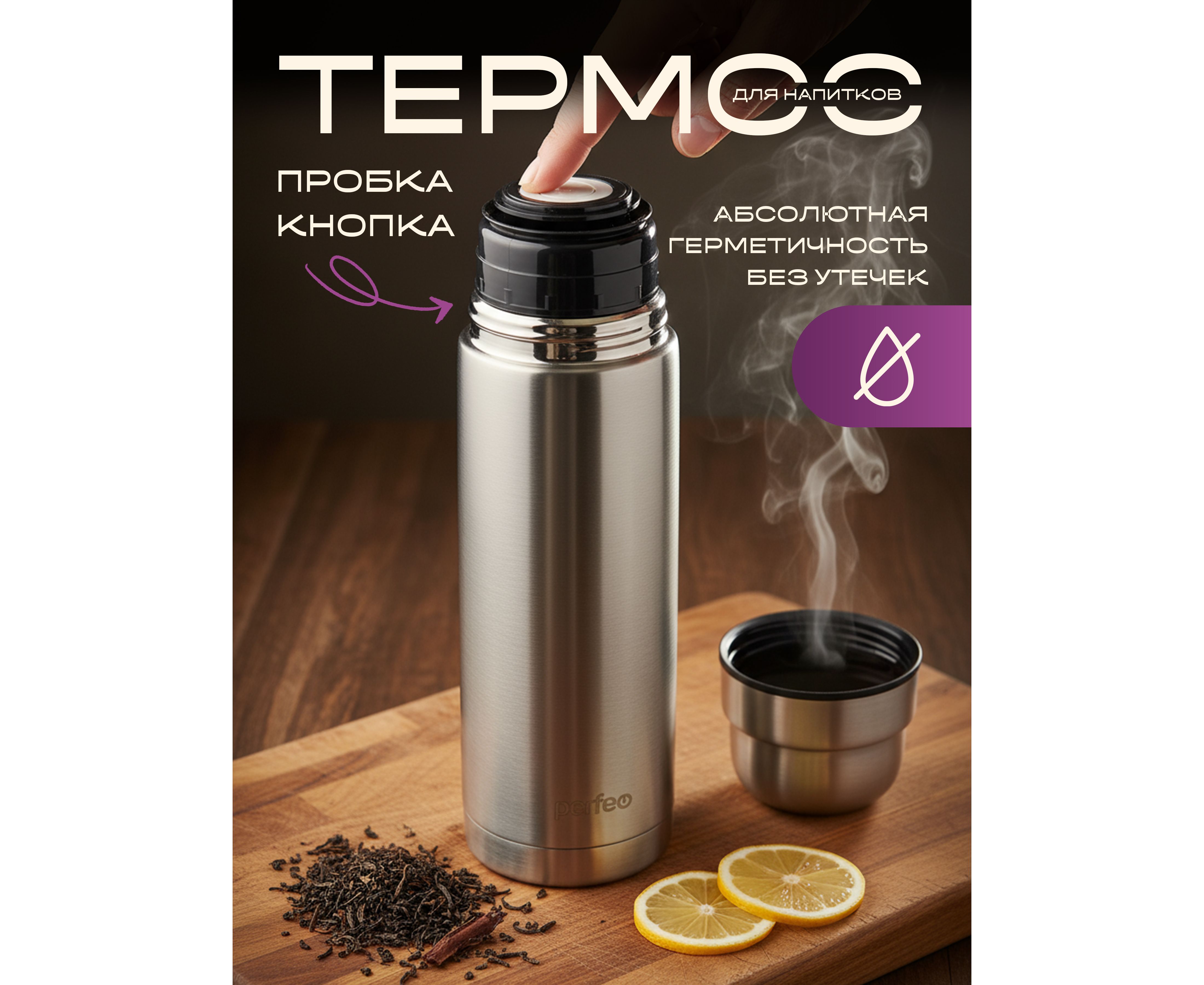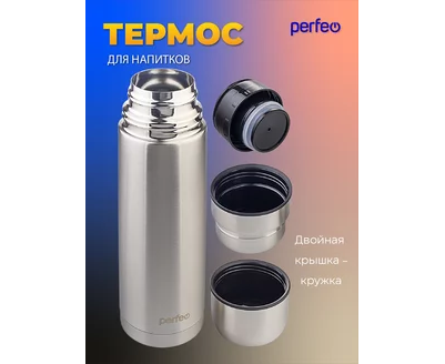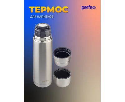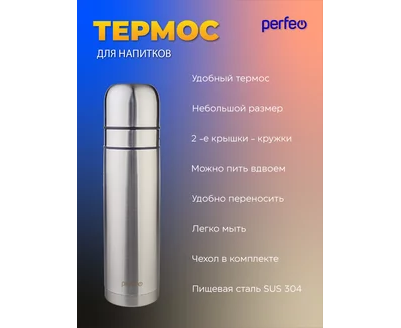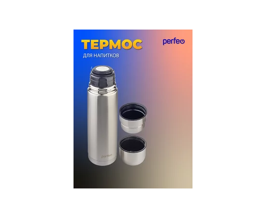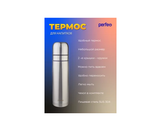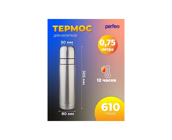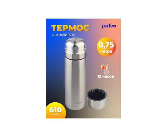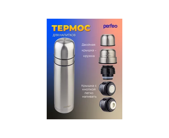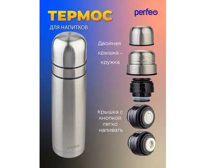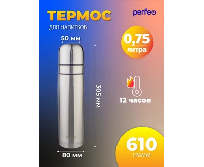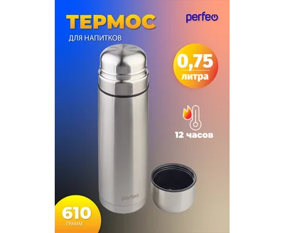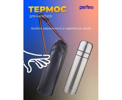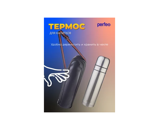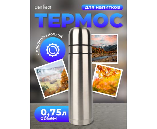 Термос для напитков PERFEO с пробкой-кнопкой, сумкой, объем 0,75 л., нержавеющая сталь, (Арт. PF_E1365)
