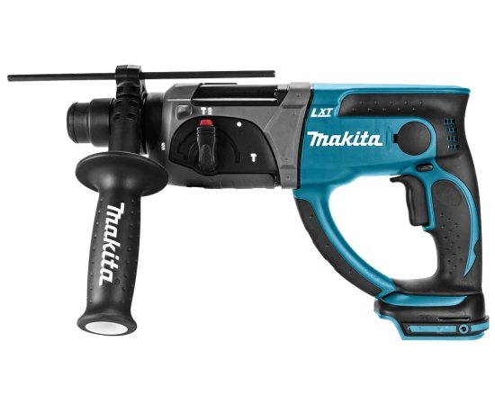 Аккумуляторный электрический перфоратор с традиционной горизонтальной компоновкой и патроном SDS Plus. Развивает внушительный крутящий момент и силу удара до 2 Дж, чего вполне достаточно для выполнения широкого круга монтажно-демонтажных и строительных работ, требующих ударного/простого сверления или долбления твердых минеральных материалов. Рассчитан на работу с фирменными Li-Ion аккумуляторами со слайдерным креплением, напряжением 18 В и емкостью от 1,5 до 4,0 Ач (аккумуляторы и зарядное устройство в комплект поставки не входят). Благодаря автономному электропитанию перфоратор Makita DHR202Z удобен для выполнения выездных работ на объектах, лишенных подключения к электрической сети. Имеет умеренный вес (3,5 кг с батареей) и эргономичную конструкцию с прорезиненными рукоятками. Может функционировать в трех режимах: долбления, ударного и обычного сверления. Без проблем сверлит отверстия в высокопрочном бетоне и железобетоне, а также искусственном и натуральном камне. Режим долбления будет полезен для быстрых демонтажных работ и дает возможность создавать пазы (штробы) в штукатурке и легком бетоне. Предусмотрена LED-подсветка, реверс и расцепная муфта, помогающая справиться с ситуацией, возникающей при заклинивании бур
