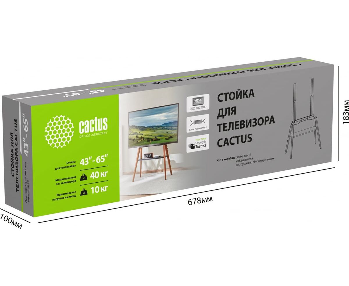 Подставка для телевизора CACTUS CS-ST3645BKWN сочетает в себе элегантность и функциональность, что делает ее идеальным дополнением к любому интерьеру. Изготовленная из дерева и металла, она обеспечивает надежную поддержку для телевизоров с диагональю от 43 до 65 дюймов и весом до 40 кг. Черный цвет в сочетании с оттенком американского ореха придает подставке стильный и современный вид. Габариты 721х370х1258 мм позволяют разместить ее в различных помещениях, не занимая много места. Прямоугольная форма и классический стиль делают ее универсальным решением для дома или офиса. Подставка не имеет регулировки по высоте, что упрощает ее использование и обеспечивает стабильность конструкции.
