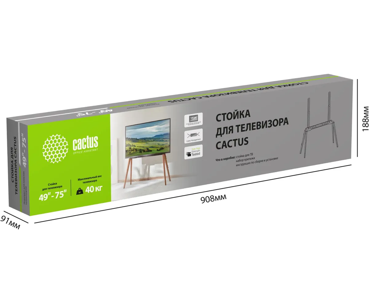 Подставка для телевизора Cactus CS-ST3646BKWN черный/орех 49"-75" макс.40кг напольный