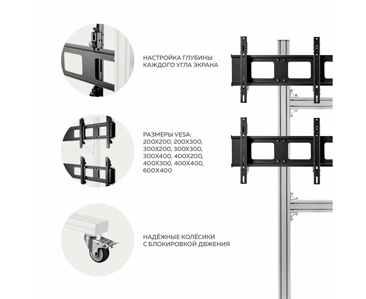 VESA 200x100, 200x200, 300x300, 400x400, 600x400