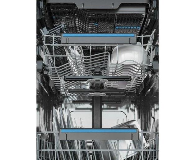 Модель оснащена конденсационной сушкой и поддерживает сразу 8 программ мойки, включая автоматическую, интенсивную, деликатную и экономичную. Благодаря наличию третьего короба для столовых приборов и регулировке положения верхней корзины по высоте, внутренняя организация пространства позволяет удобно размещать даже крупногабаритную посуду.