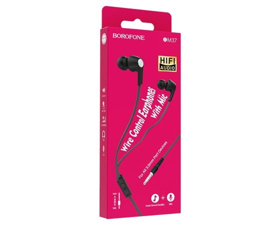 Проводные наушники BOROFONE BM37 Noble, Jack 3.5mm, 1.2 м, черный