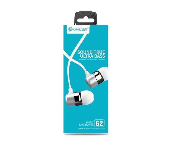 Проводные наушники с микрофоном внутриканальные Celebrat G2 Jack 3,5 (white) (106439)