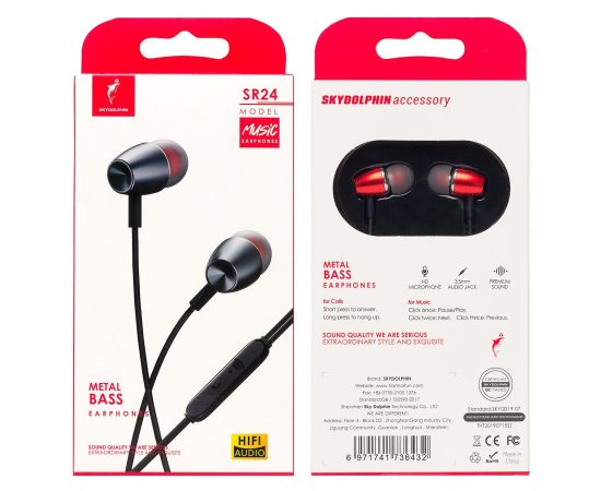 Проводные наушники с микрофоном внутриканальные SKYDOLPHIN SR24 Jack 3,5 (red) (206548)