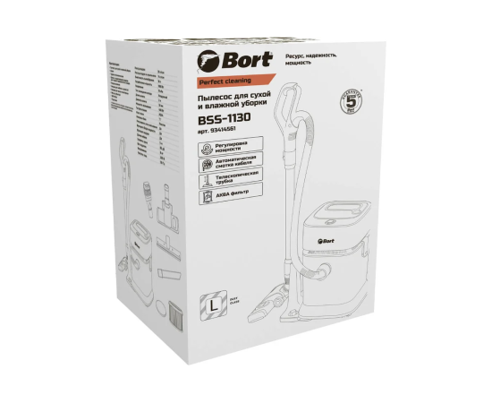 Пылесос BORT BSS-1130 — это современное и мощное устройство, специально разработанное для эффективной сухой и влажной уборки в домашних условиях и на небольших объектах. Он сочетает в себе высокие эксплуатационные характеристики, удобство в использовании и множество функций, что делает его отличным выбором для поддержания чистоты.