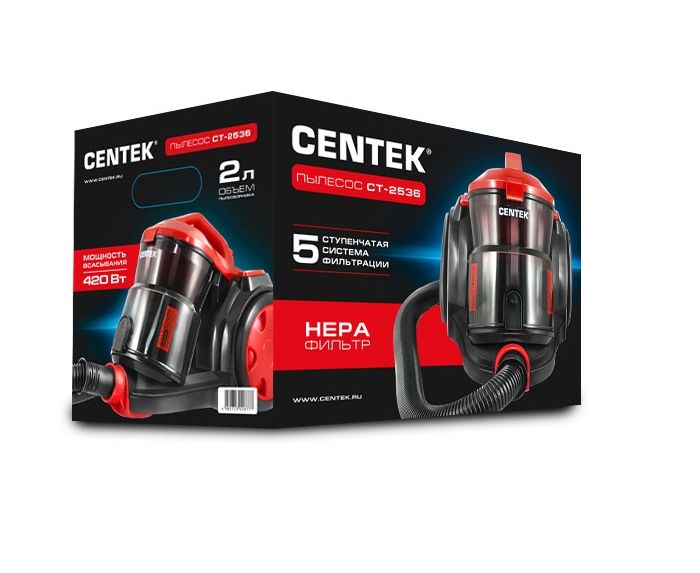 Пылесос Centek СТ-2536 (красн/черн) мультициклон 2400/420Вт. стакан 2 л. телескоп металл. трубка