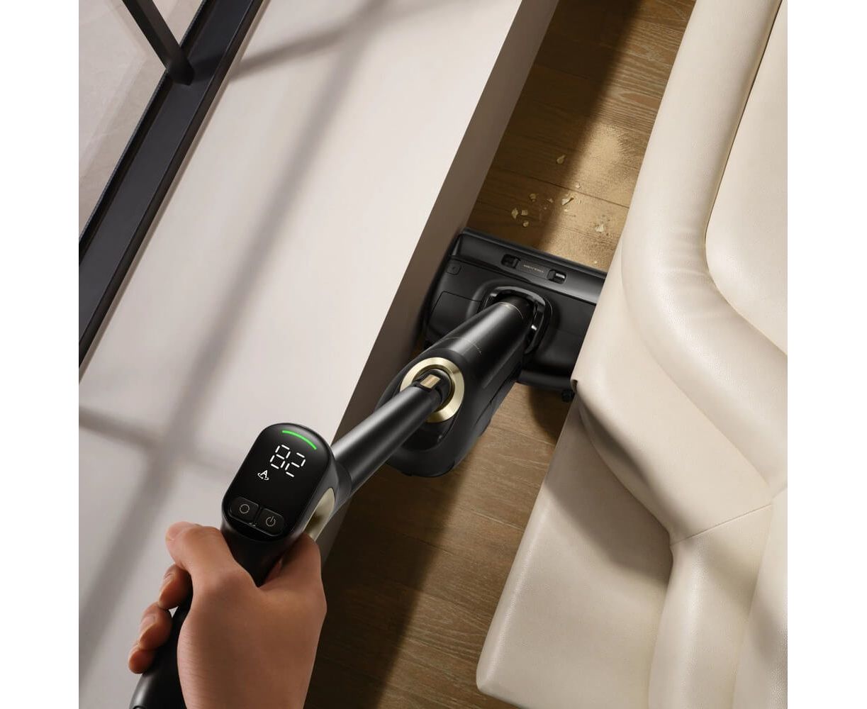 высокоскоростной двигатель с частотой вращения 104000 об/мин, автоматическая самоочистка (промывка щётки при температуре 90 °C, сушка валика при температуре 90 °C), технология Lie-Flat Raech (складная труба всасывания с наклоном на 180°), вращение на 90°, технология защиты от запутывания волос Tangle-Free, индикация концентрации пыли и процесса сушки валика