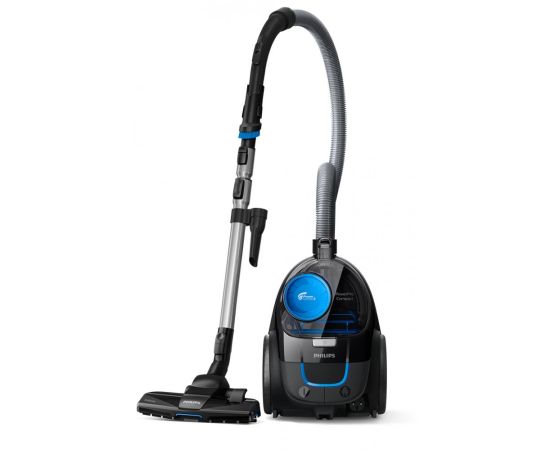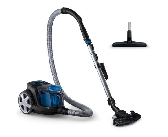 Пылесос из серии Philips PowerPro Compact предлагает высокую производительность в довольно компактном корпусе: размеры устройства составляют 41х28х25 см, а вес — 4.5 кг. Внутри установлен мотор с высокой мощностью 900 Вт, не забыли и о фирменной технологии PowerCyclone 5, которая ускоряет поток воздуха в камере для более эффективного отделения пыли и поддержания высокой силы всасывания. При этом система фильтрации Allergy H13, уровень которой эквивалентен HEPA 13, удерживает 99.9% мелких частиц, в том числе пыльцу, шерсть животных и пылевых клещей, что особенно важно для людей, страдающих аллергией. Вместо мешка Philips PowerPro Compact FC 9331 использует пластиковый контейнер с системой циклон объемом 1.5 л, который можно легко и быстро очистить, не запачкав руки. Радует и комплектация модели, в которую включены сразу четыре насадки. Это основная щетка TriActive, которая предназначена для любого покрытия и всасывает больше мусора благодаря дополнительным отверстиям спереди и по бокам, встроенная в ручку пылевая щетка, а также щелевая и насадка для твердых напольных покрытий. А шнур длиной 6 метров обеспечивает свободу действий и помогает добраться до самых укромных уголков помещения.