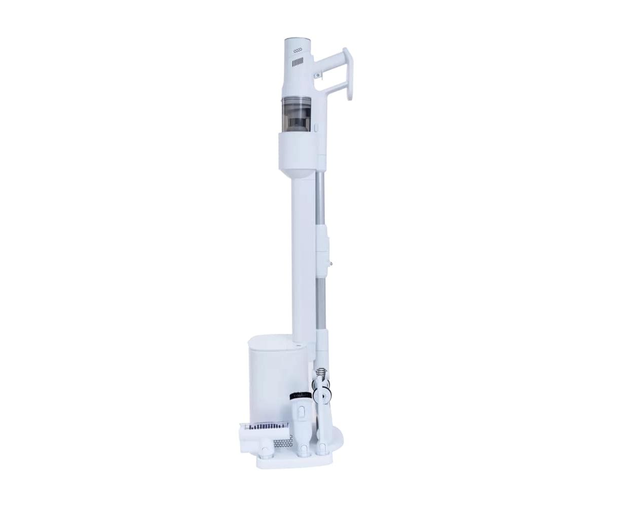 Комплектация пылесос, зарядная база-пыленакопитель, батарея, насадка 2 в 1, щелевая насадка, мини турбощетка, насадка для влажной уборки, адаптер, мешок для пыли 3 шт., инструкция