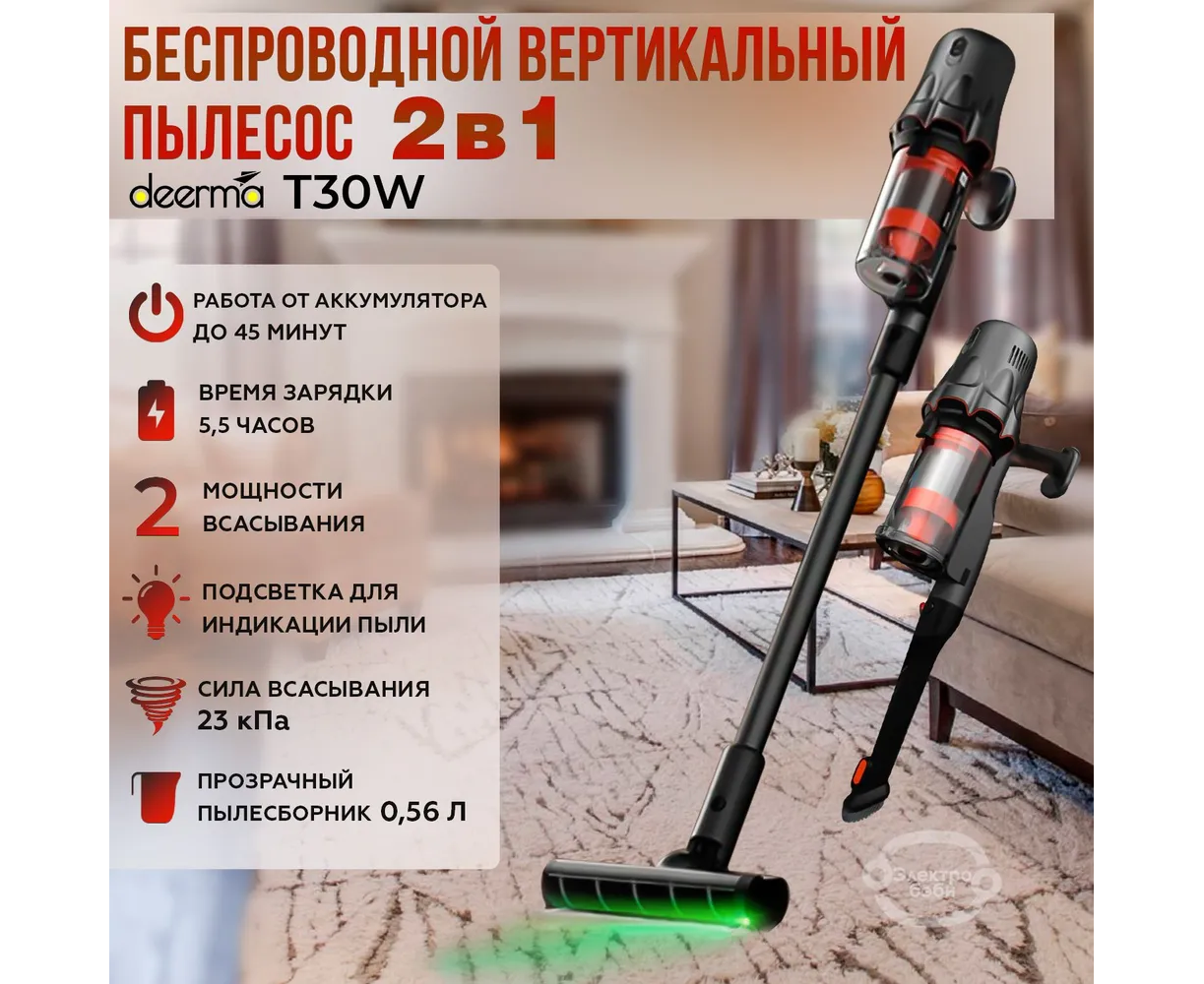 Пылесос Deerma Deerma DEM-T30W Combo обладает компактной, эргономичной конструкцией. Два режима мощности позволят максимально облегчить процесс уборки, не оставляя пыли ни шанса. Работает модель от встроенного перезаряжаемого аккумулятора емкостью 2500 мАч, который обеспечивает до 45 минут автономной уборки. Пылесос оснащен лазерной подсветкой, которая эффективно подсвечивает любые загрязнения на полу.