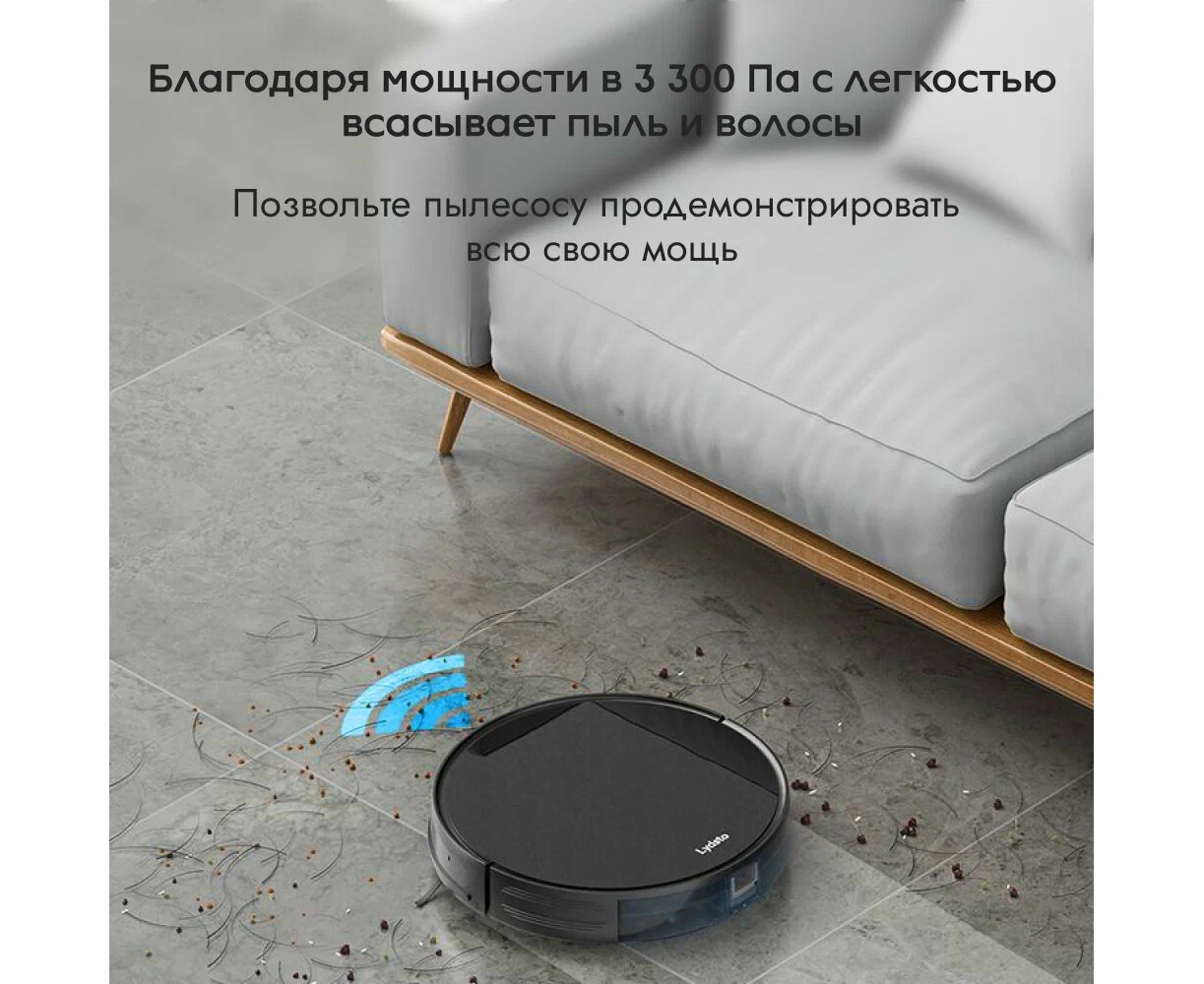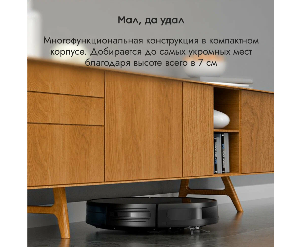 Тройная система фильтрации. Управление через приложение. 3 уровня влажной уборки. «Ручное» мытье пола. Четыре уровня мощности.