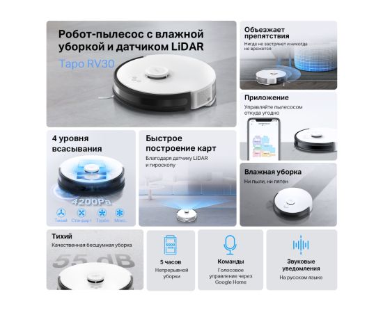 Робот-пылесос TP-Link Tapo RV30 с влажной уборкой и датчиком LiDAR