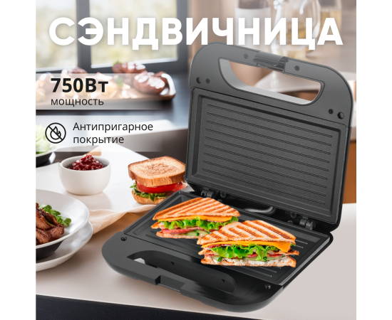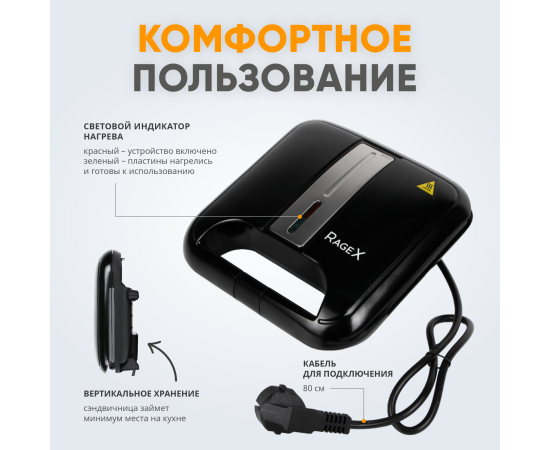 Сэндвичница RageX R731-000, гриль, 750Вт, черная