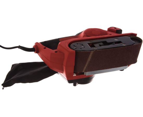 Ленточная шлифмашина Einhell TC-BS 8038 имеет две рукояти для плотного прижима к обрабатываемой поверхности. Все рабочие узлы закрываются корпусом, который защищает их от загрязнения и механических повреждений. Для замены оснастки ключ или любой другой инструмент не требуются. Размер оснастки - 76х533 мм.