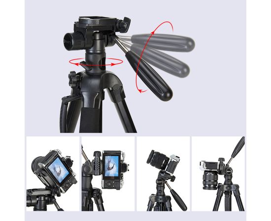 Jmary KP-2274 - универсальный, многофункциональный штатив-монопод, оснащенный головкой с удобной рукояткой, которая имеет совместимость с большим количеством разнообразных устройств, от зеркальных камер до внешних вспышек. Максимальная нагрузка 4 кг. Вращение головы вокруг вертикальной и горизонтальной оси происходит независимо. Благодаря этому штатив можно использовать для панорамной фотосъемки или видеосъемки. Третья ось позволяет наклонить камеру вбок для перехода в "портретный" режим. Длинная рукоятка позволит вращать камеру плавно, без резких рывков.Голова оборудована пузырьковым уровнем для выставления камеры по горизонту.На площадке находится винт 1/4" со скобой для комфортного закручивания. Площадка с камерой легко и быстро устанавливается на штатив, надежно удерживается подпружиненным зажимом.Реечный микролифт позволяет плавно регулировать высоту штатива, без необходимости перенастройки положения ног. Микролифт является востребованной функцией при выборе, смене или чередовании ракурсов съемки. Рукоятка микролифта складывается после регулировки и не мешает съемке или транспортировке. Положение микролифта фиксируется винтом. Центральная колонна может быть извлечена и преобразована в монопод. Секции ног надежно фиксируются клипсовыми замками. На концах ног установлены резиновые наконечники с шаровым основанием, которые позволят добиться максимальной устойчивости на любых поверхностях.На центральной колонне расположена рукоятка из прочного композитного пластика, которая позволит комфортно использовать штатив даже при отрицательных температурах. Благодаря растяжке, расположенной на верхней секции, подготовка штатива к работе и выравнивание происходит быстрее и легче. Для дополнительной стабильности и устойчивости предусмотрен специальный крюк.Для бережной транспортировки и хранения штатив комплектуется удобным чехлом.Jmary KP-2274 - универсальный, многофункциональный штатив-монопод, оснащенный головкой с удобной рукояткой, которая имеет совместимость с большим количеством разнообразных устройств, от зеркальных камер до внешних вспышек. Максимальная нагрузка 4 кг. Вращение головы вокруг вертикальной и горизонтальной оси происходит независимо. Благодаря этому штатив можно использовать для панорамной фотосъемки или видеосъемки. Третья ось позволяет наклонить камеру вбок для перехода в "портретный" режим. Длинная рукоятка позволит вращать камеру плавно, без резких рывков.Голова оборудована пузырьковым уровнем для выставления камеры по горизонту.На площадке находится винт 1/4" со скобой для комфортного закручивания. Площадка с камерой легко и быстро устанавливается на штатив, надежно удерживается подпружиненным зажимом.Реечный микролифт позволяет плавно регулировать высоту штатива, без необходимости перенастройки положения ног. Микролифт является востребованной функцией при выборе, смене или чередовании ракурсов съемки. Рукоятка микролифта складывается после регулировки и не мешает съемке