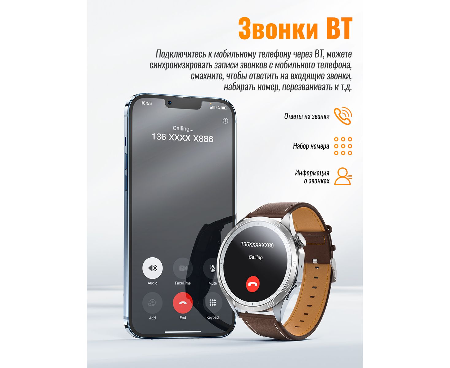 Доп. опции смарт-часов и пульсометров громкая связь; поиск телефона; вибрация