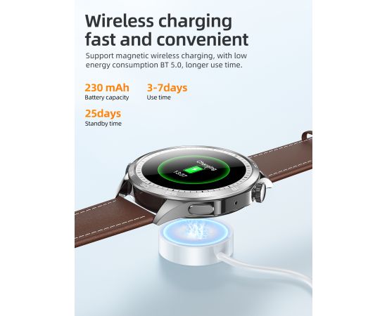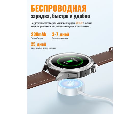 Комплектация Смарт часы; Кожаный ремешок; Силиконовый ремешок; Беспроводная зарядка; Фирменная упаковка