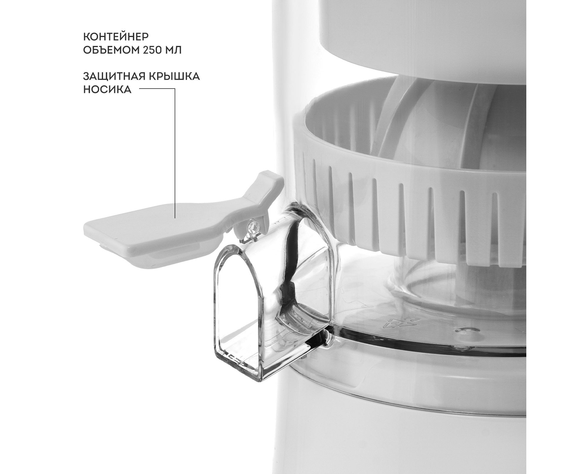 Конус с фильтром обеспечивает высокое качество сока с минимальным количеством мякоти.