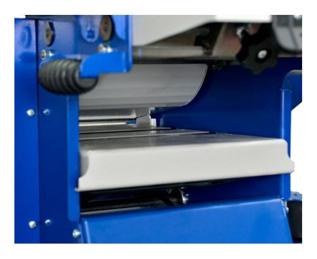 Однофазный двигатель обеспечивает высокую производительность станка. В конструкции предусмотрен патрубок для отвода пыли для поддержания чистоты рабочей зоны. Размер рейсмусового стола составляет 425х260 мм, что позволяет работать с габаритными заготовками.