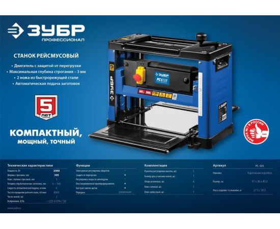 Станок рейсмусовый Зубр РС-305