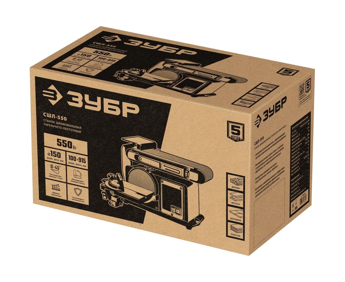 Технические характеристики станка шлифовального ЗУБР СШЛ-550
