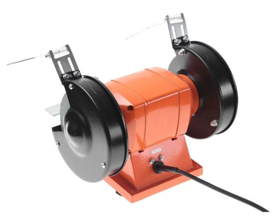 2 вида защиты – искрогаситель и защитный экран; асинхронный электродвигатель; комплектация: точильный станок – 1 шт., круг шлифовальный – 2 шт., экран защитный – 2 шт., искрогаситель – 2 шт., крепеж – 1 комплект, рабочий упор – 2 шт., паспорт – 1 шт.; вес – 4.4 кг
