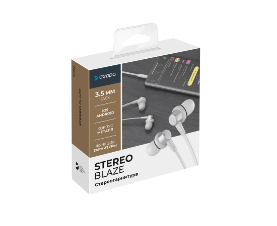 Стереогарнитура Stereo Blaze, серебристый, Deppa