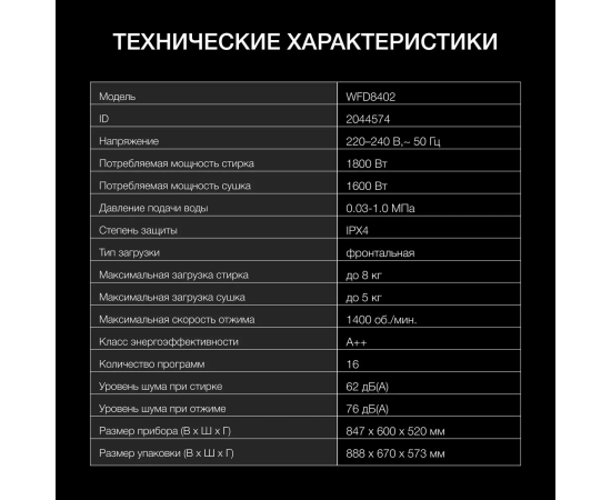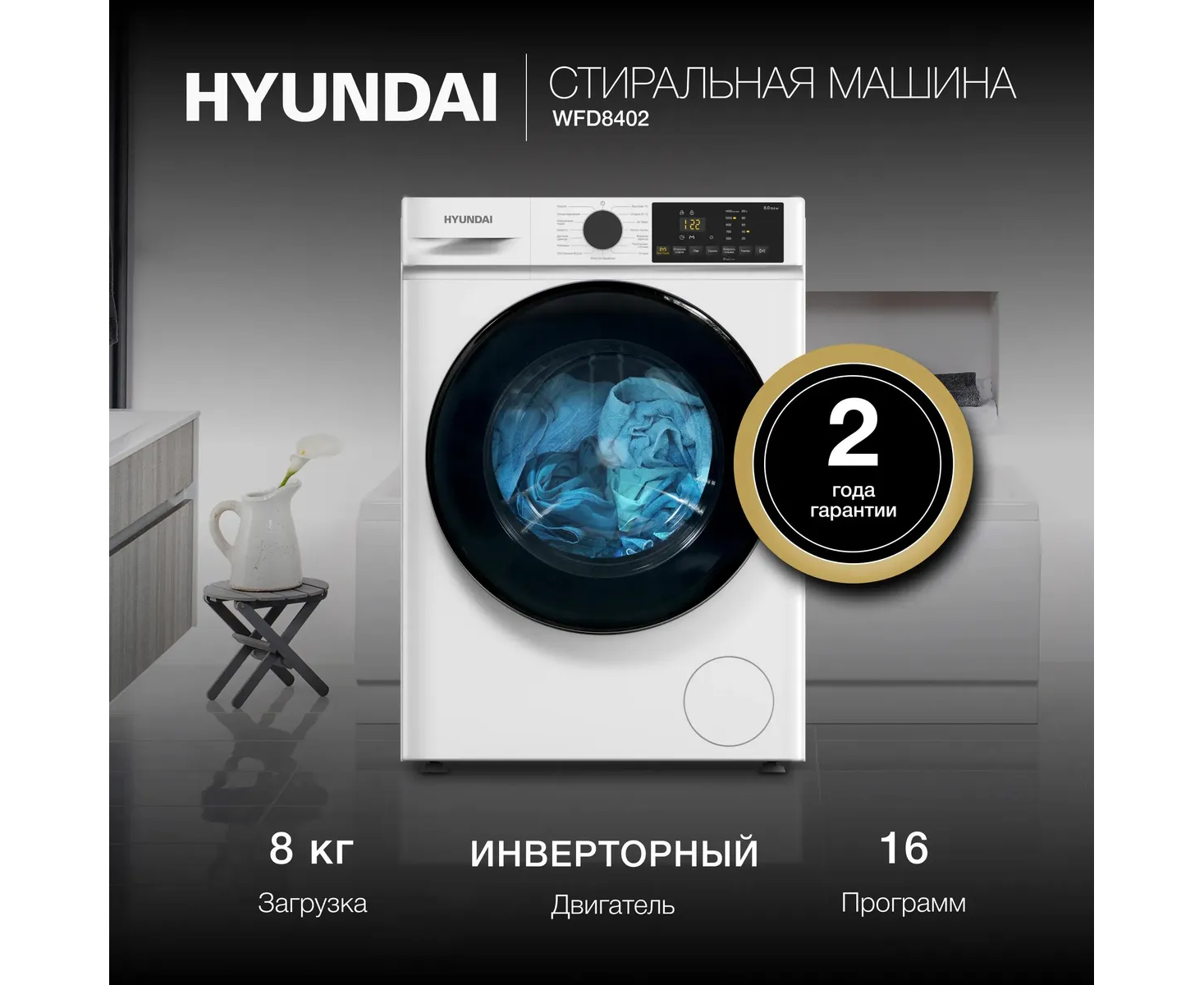 Стиральная машина Hyundai WFD8402 белый