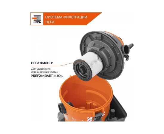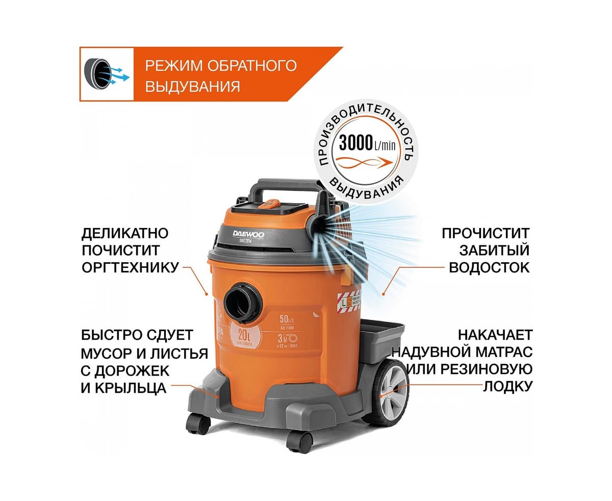 Строительный пылесос Daewoo DAVC 2014 1400Вт (уборка: сухая/сбор воды/выдув) оранжевый