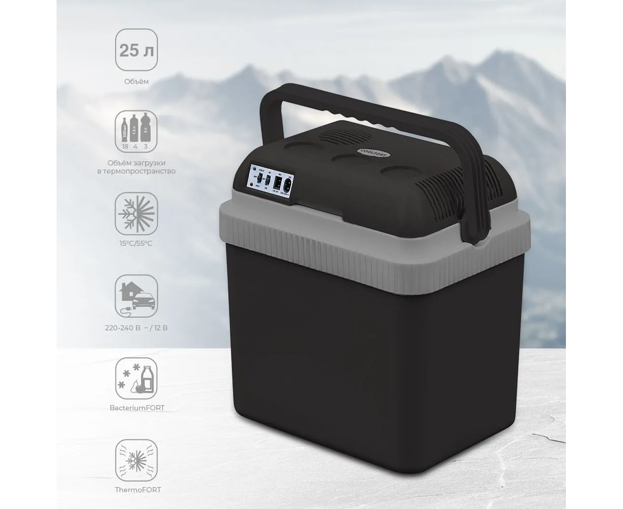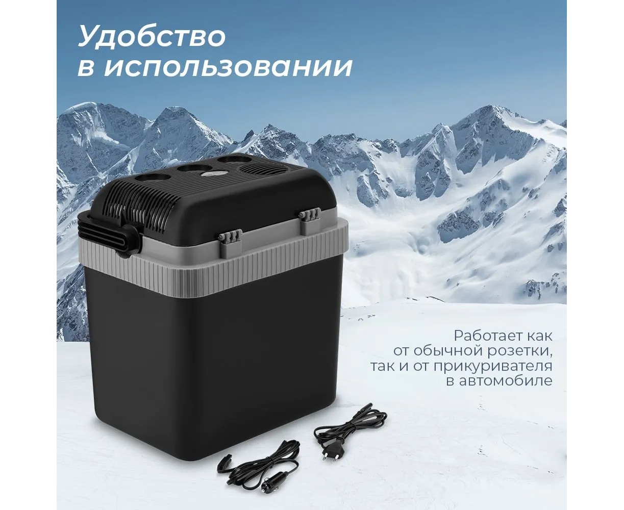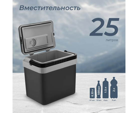 Описание Технические характеристики Объем 25 литров Охлаждение есть Охлаждение относительно окружающей среды 15-22°С Потребляемая мощность охлаждение 50 Вт/ 60 Вт Температура нагрева 55±10°С Потребляемая мощность нагрев 41 Вт/ 56 Вт Регулировка ручек есть Ручки для переноски есть Система вентиляции есть Электропитание 12 В / 220-240 В