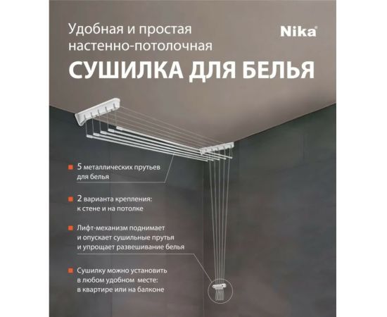 Настенно-потолочная сушилка Nika 9м СНП 1.8 белая НИКА-СНП1.8/БЕЛАЯ предназначена для сушки белья в помещении.