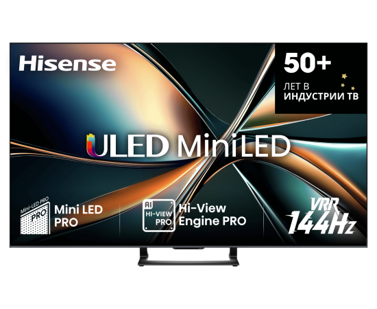 65" Телевизор Hisense 65U7Q черный QLED 3840x2160, 4K Ultra HD, 144 Гц, Wi-Fi, Smart TV, VIDAA