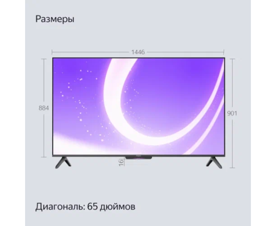 65 " Телевизор YANDEX YNDX-00077 черный 3840x2160, 4К Ultra HD, 60 Гц, WIFI, SMART TV, ТВ Станция с Алисой