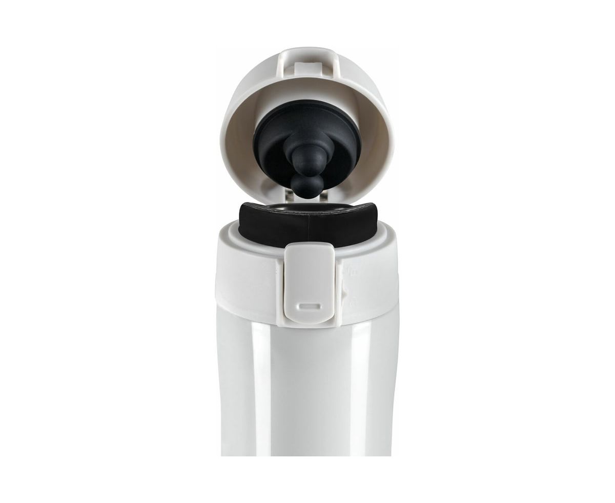 Термокружка обладает оптимальной формой для фиксации в держателе автомобиля, что позволяет использовать ее во время поездок. Термокружка снабжена откидывающейся крышкой с кнопкой, позволяющей с легкостью использовать ее одной рукой. Также, для защиты от непроизвольного нажатия кнопки, кружка имеет специальный защитный замок-предохранитель.
