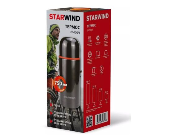 Термос Starwind 20-750 0.75л. серебристый/красный
