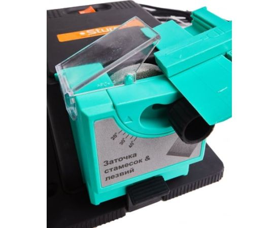Многофункциональный точильный станок Sturm BG6010S применяется в небольших мастерских для заточки различного режущего инструмента (сверел диаметром 2-10 мм, лезвий рубанков шириной 6-51 мм, ножей, ножниц). Выполнение работ обеспечивает шлифовальный круг диаметром 49.3 мм. Защитный экран из прозрачного пластика дает возможность оператору визуально наблюдать выполнение операции. Станок имеет малые габаритные размеры и вес, что позволяет с легкостью переносить установку.