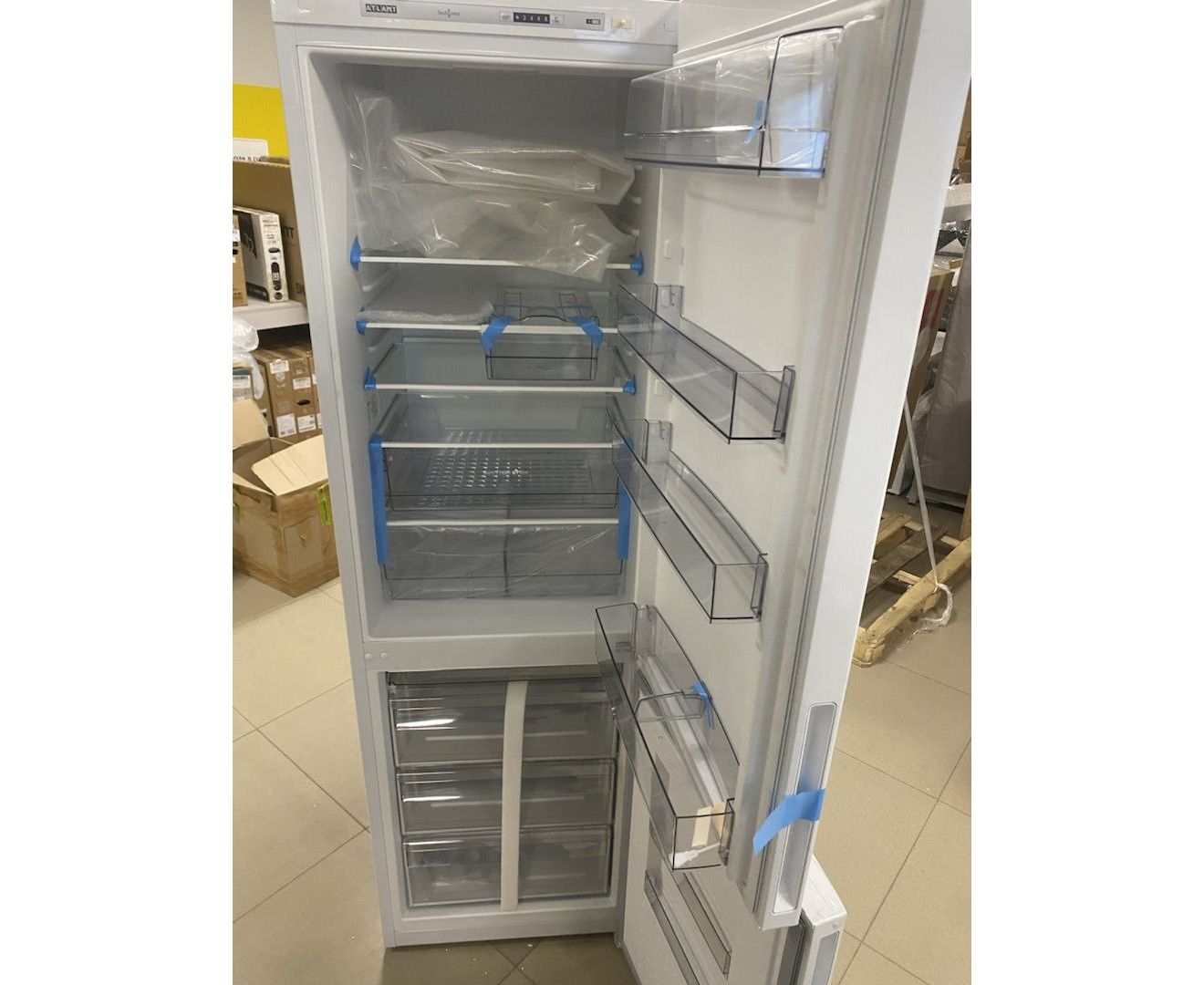УЦ Холодильник Atlant XM 4624-101 белый (плохая упаковка. замена верхней двери, потертости и вмятины на корпусе)