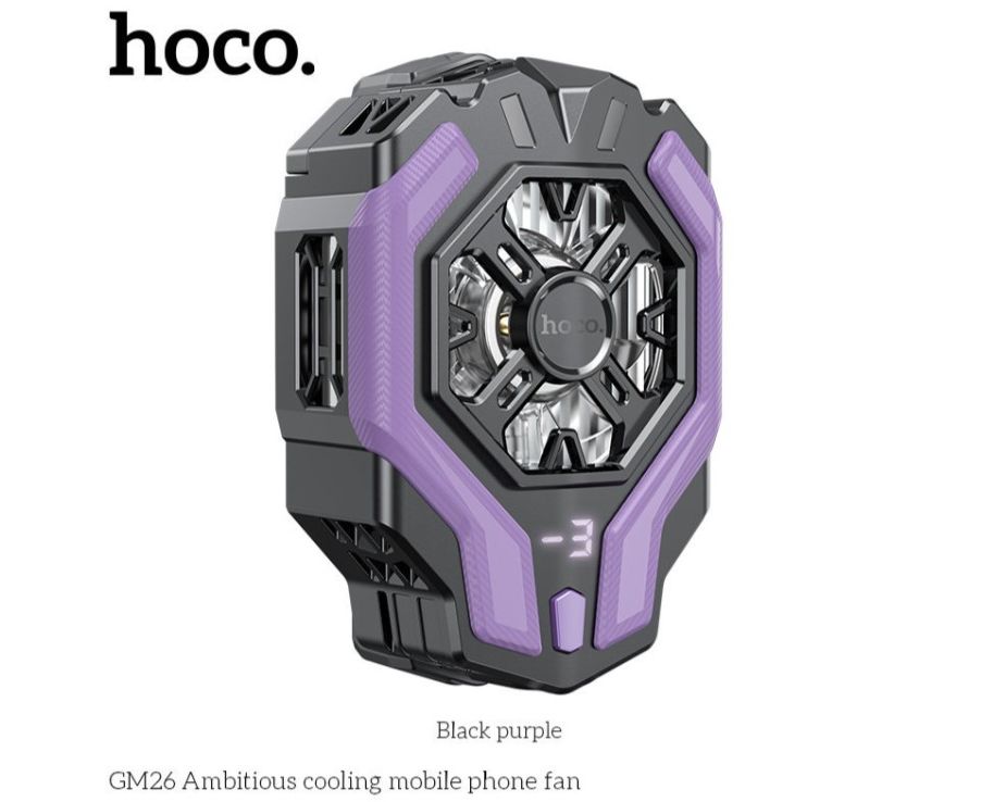 УЦ Кулер игровой (охлаждение) для смартфонов HOCO GM26 Ambitious cooling mobile phone fan (черный/фиолетовый) (плохая упаковка)