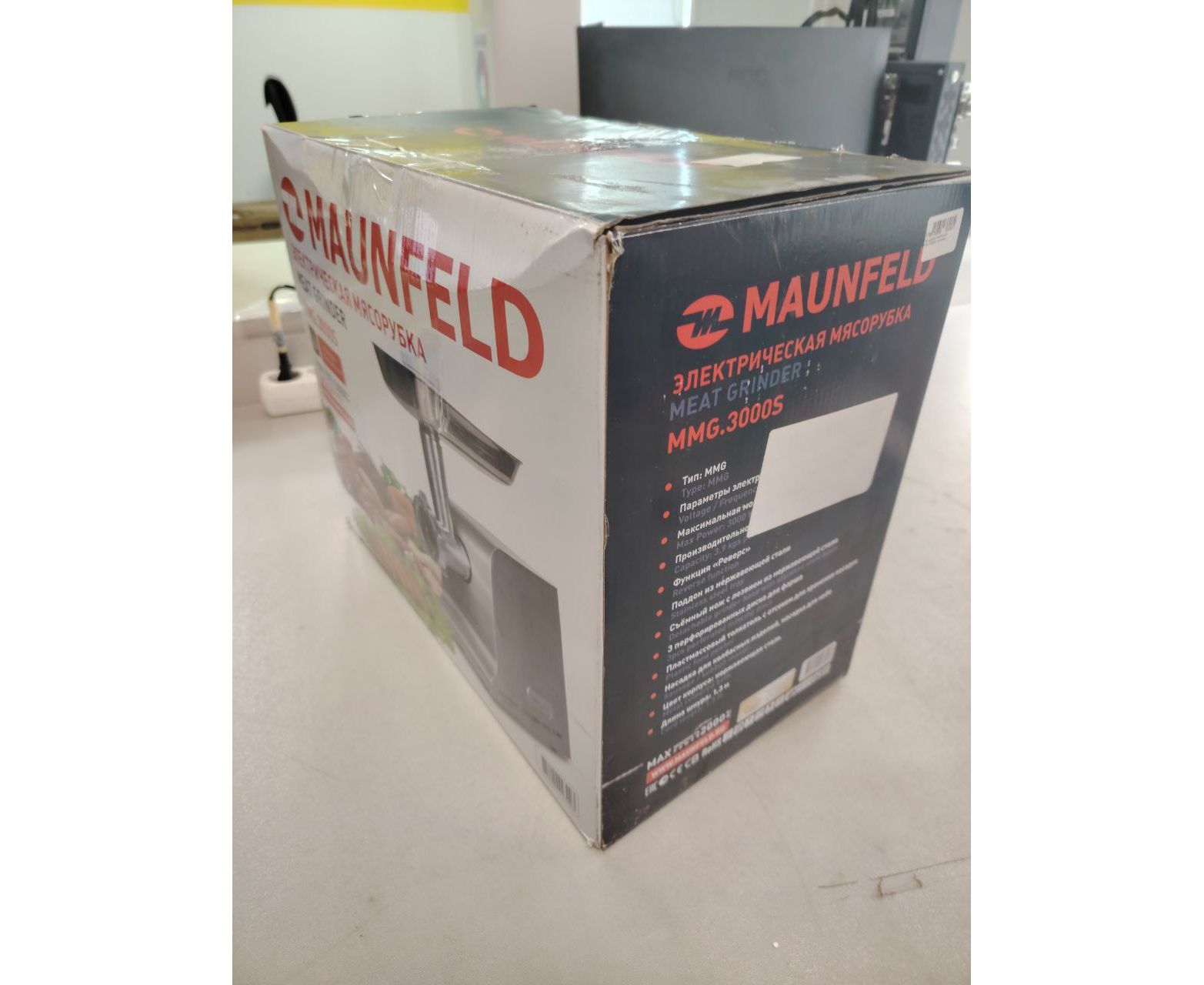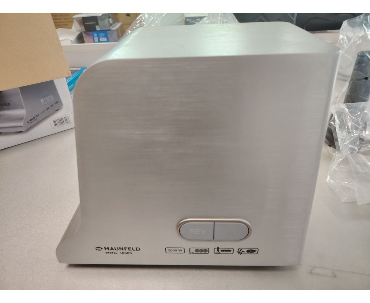 УЦ Мясорубка MAUNFELD MMG.3000S, металлик (плохая упаковка, бу, замена мотора)