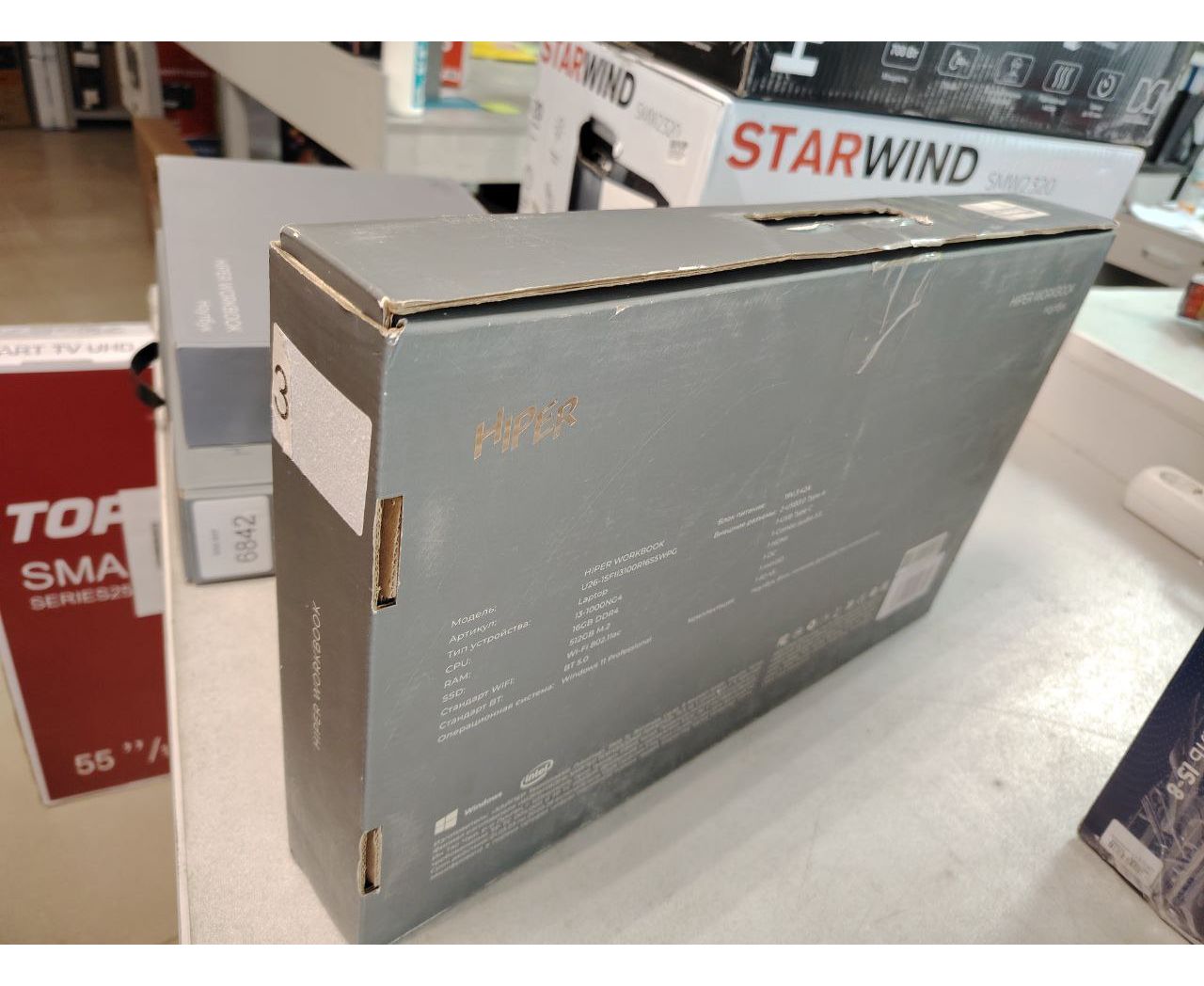 УЦ Ноутбук 15.6" IPS FHD HIPER WORKBOOK black (Core i3 1000NG4/16Gb/512Gb SSD/VGA int/W11Pro (плохая упаковка, бу, замена мат.платы)