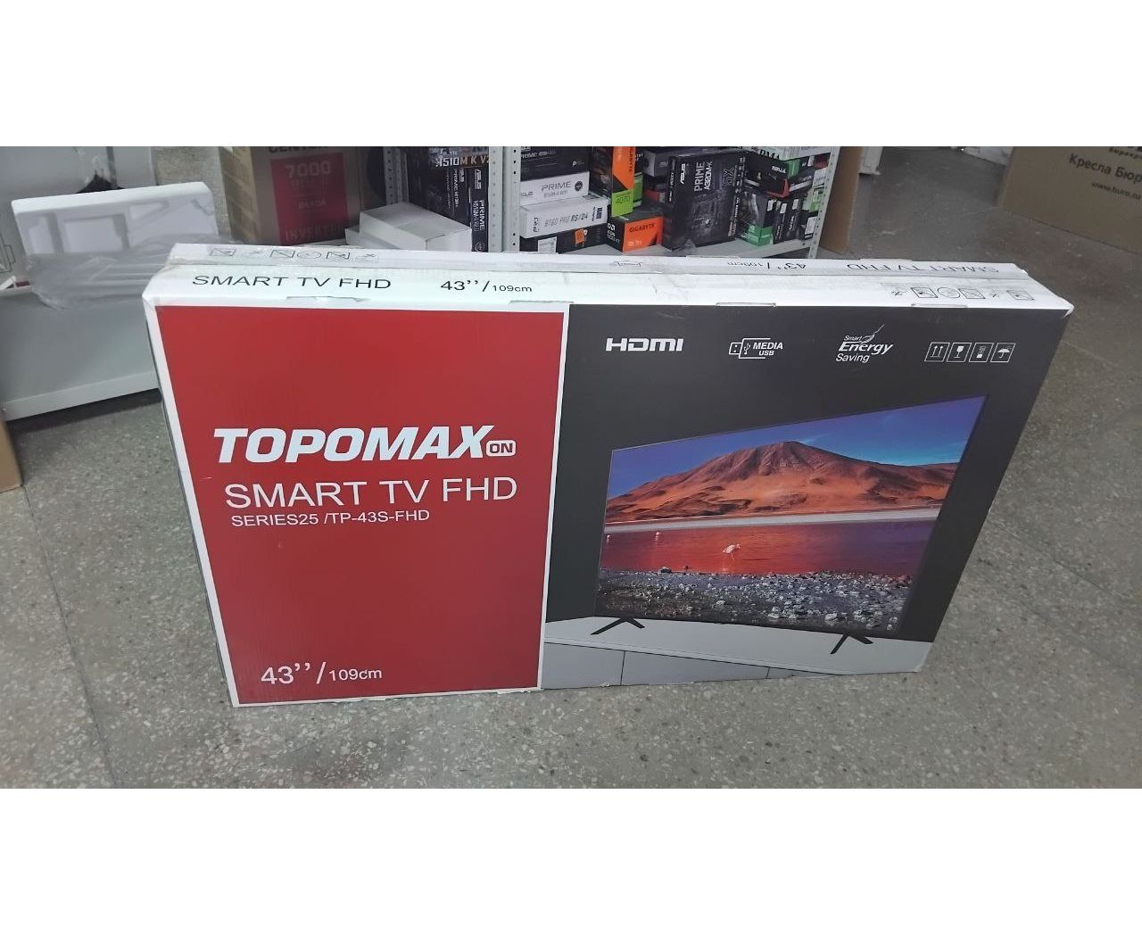 УЦ 43" Телевизор TOPOMAX (TM43FHSBK) черный 1920x1080, Full HD, 60 Гц, Wi-Fi, Smart TV, (После СЦ. Замена линейки матрицы. Полоса на дисплее. ПУ)
