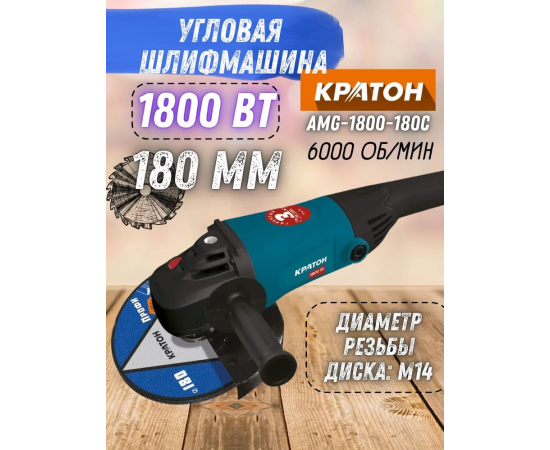 Углошлифовальная машина Кратон AMG-1800-180C 1800Вт 6000об/мин рез.шпин. M14 d=180мм (30501046)