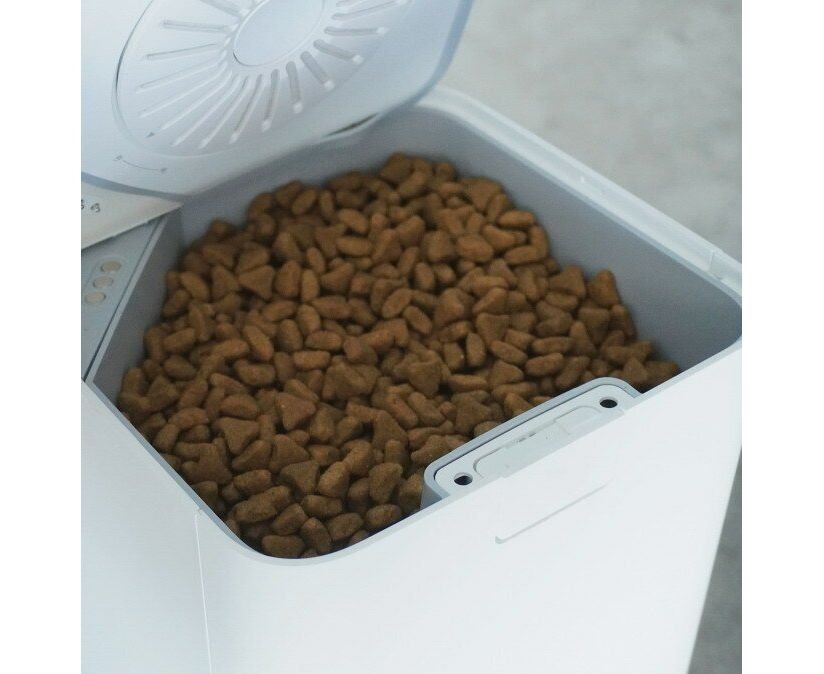 Автоматическая кормушка с большим хранилищем сухого корма на 1,8 кг подходит как для кошек, так и для собак. Для небольшого животного такого количества корма хватит примерно на 15-20 дней.