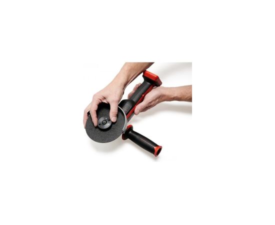 Работа с машинкой очень комфортна, благодаря компактной конструкции с эргономичной мягкой рукояткой, дополнительной двухпозиционной ручке, а также разделению двигателя и редуктора. Наличие гайки быстрой фиксации устраняет необходимость в торцевом гаечном ключе для замены режущего диска: замена происходит быстро и без использования инструментов. Защитный кожух с быстрой регулировкой обеспечивает гибкую работу. Инструмент поставляется с аккумулятором 4 Ач и зарядным устройством 3А.