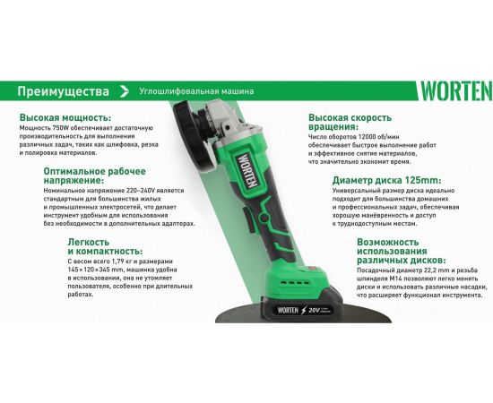УШМ WORTEN D125 КА-90000329 2АКБ, М14 IM