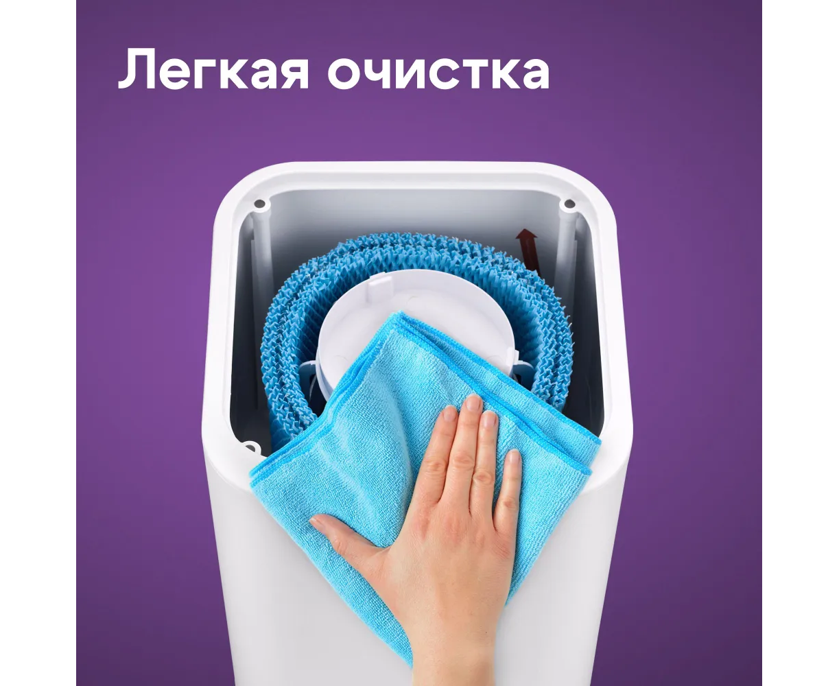 Верхний залив воды позволяет быстро и удобно наполнить увлажнитель водой – не нужно разбирать и собирать прибор.