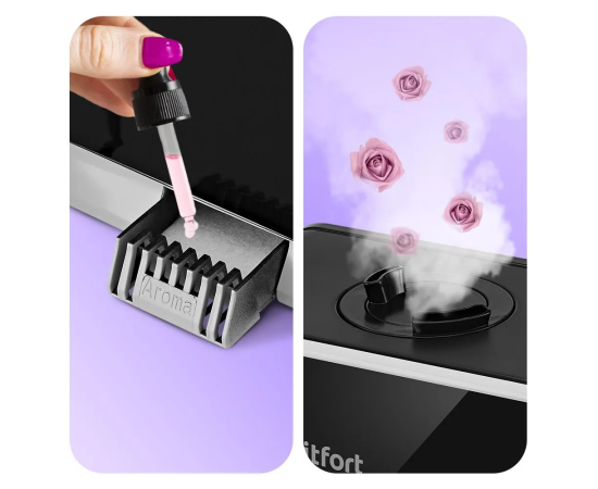 В данной модели увлажнителя предусмотрена ванночка для ароматизации с губкой, на которую добавляют эфирные или аромамасла. Во время работы увлажнителя ароматическое вещество будет испаряться, и вместе с туманом выдуваться наружу.